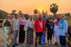 Het was buiten bijna niet uit te houden — de hitte sloeg je tegemoet zodra je een voet buiten zette. Gelukkig was er goede airconditioning in de conferentiezaal in Siem Reap, waardoor de discussies en gesprekken verhit konden worden zonder dat iemand eraan onderdoor ging. Maar ik moet eerlijk zeggen dat het reuze meeviel. De week kenmerkte zich vooral door saamhorigheid en solidariteit.