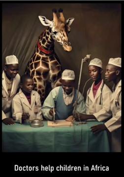 Also, when you generate a basic image, such as “Doctors help children in Africa”, wildlife comes up to help the doctors. This shows how Africa is being perceived by the rest of the world.